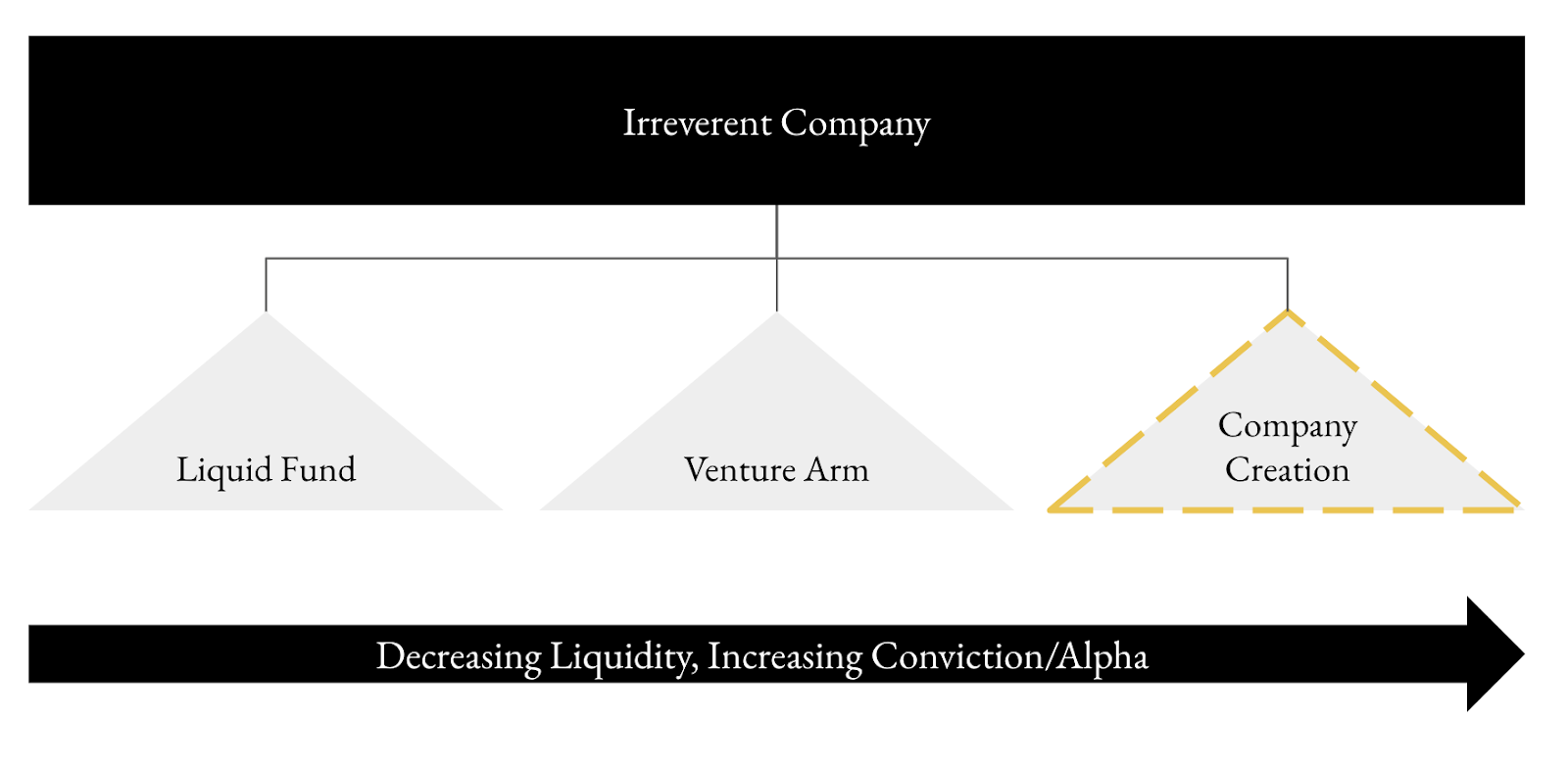 Irreverent will have three arms. We are high-conviction and are comfortable making big bets.