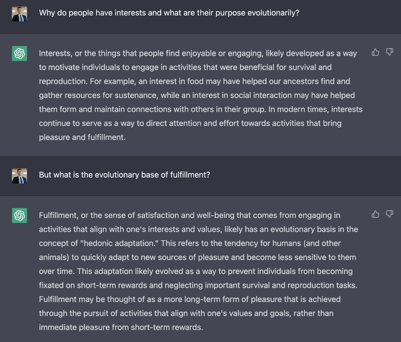 I’m struggling with the symbols and words to use here. I almost think that passions and doing what you love are mischaracterizations of what brings us the most fulfillment. At the moment, I am tinkering with using the word “truth.” It is not clear to me that what people want to work on is some arbitrary thing that they were predestined to gravitate towards. Why do they gravitate towards it? Most of the time, the interest doesn’t amount to anything, but some of the time that interest was some intuitive part of your brain moving you in the correct direction–so maybe you shouldn’t question but just accept it. I assumed it was because this is something that helps them understand the world. It solves some problem in the world that may or may not be determinate. Thinking about this problem as if you were in a village of 150 people, what would interest you? Art and beauty? Engineering a pipeline that improves crop yield? Are they intertwined? Would it depend on the person?